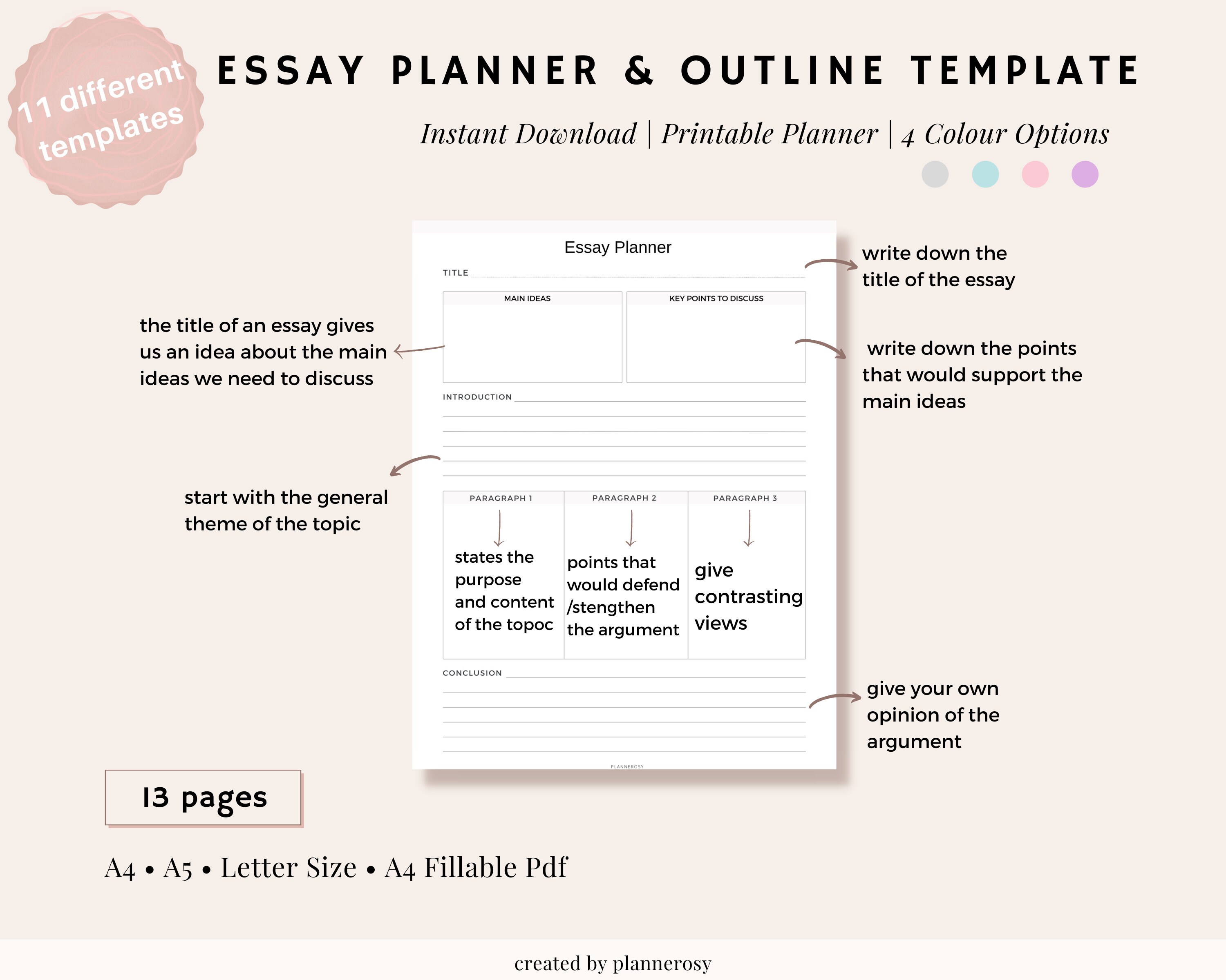 Essay Planner Essay Writing Essay Printable Essay Template Etsy